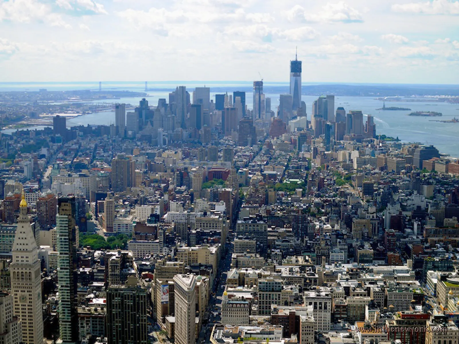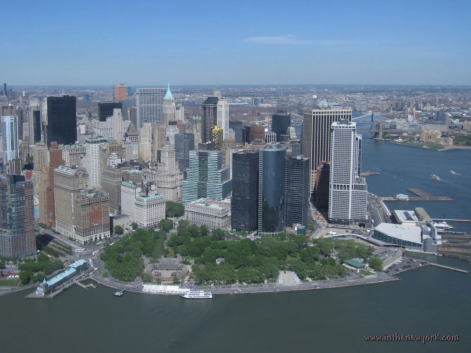 2 Statue of Liberty with the islands, Battery Park and the South Manhattan